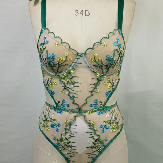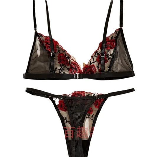 Women's Sexy Flower Sexy Lingerie Sets Home Honeymoon Sheer Bra Low Waist See-Through Sexy Lingerie