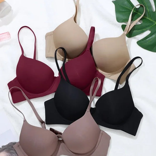 Solid Color Adjustable Seamless Bra Sexy Soft Comfort Push Up Soft Comfort V-Opening Bralette