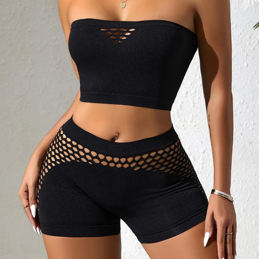Sexy Hollow Out Lingerie Set Exposed Nipple Underwear Two-Piece Set Nylon Mesh Fabric Women's Costume Style Innerwear Black