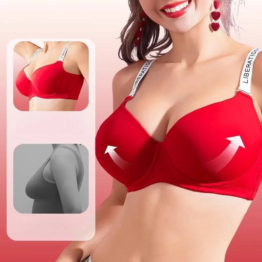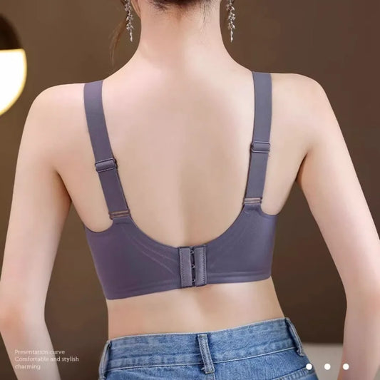 Solid Color Adjustable Sexy Comfort Push Up Side Breast Reduction V-Opening Bra