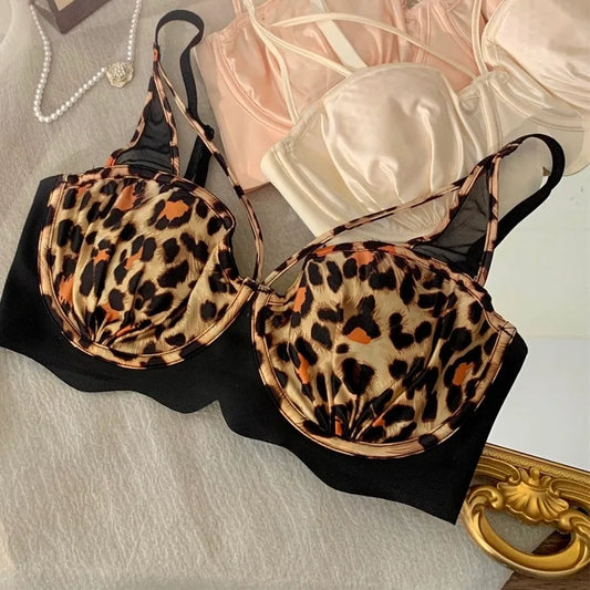 Leopard Seamless Bra Wireless Bra Sexy Smooth Sensations Nylon Breathable V-Opening All Seasons Bra