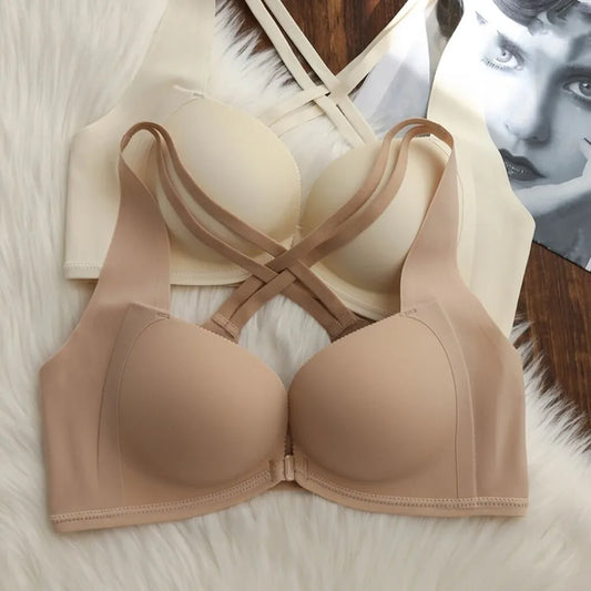 Wireless Thickened Lace Bra Front Clasp Design Gathered Seamless Underwear For Women Anti-Sagging Side Effect Remedy