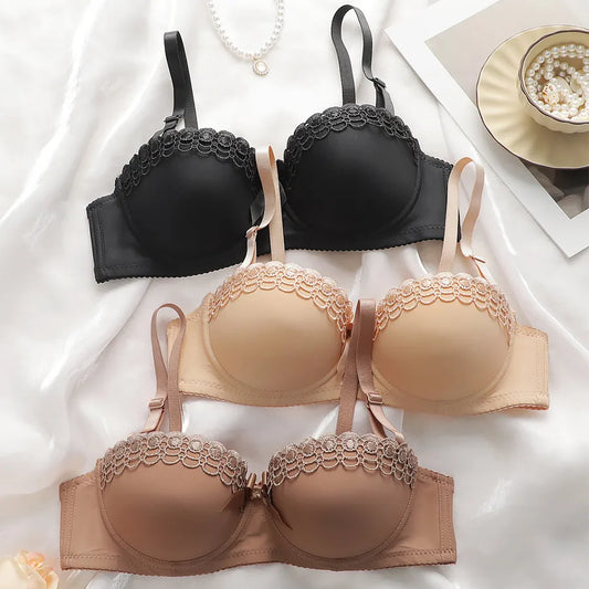 Sexy Teenage Girl Bra With Steel Ring Butterfly Embroidery Anti-Slip Fashionable Women's Underwear Half Cup Nylon And Polyester