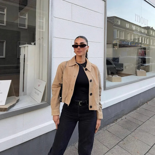 Casual Faux Leather Short Jacket Women's Autumn Winter Street Style Loose Fit European Fashion Single Button Closure Long Sleeve