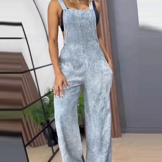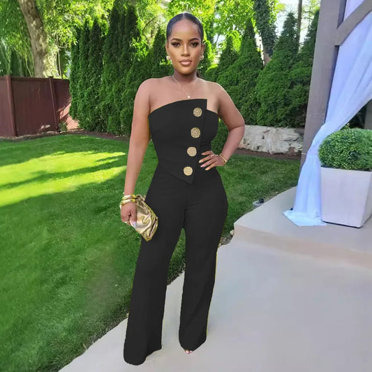 Elegant British Style One-Piece S10838 With Wide Legs No Sleeves Tube Top Elastic Waist For Women Health Cloth Polyester