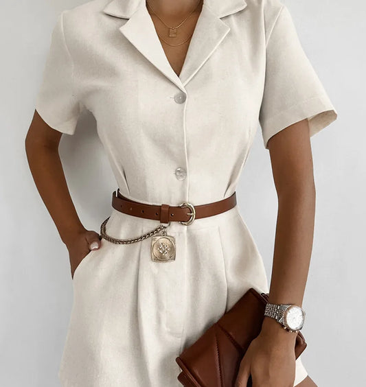 Casual Versatile Solid Color One-Piece Pantsuit With Suit Collar For Women Commute Spring Summer New Style Three-quarter Sleeve