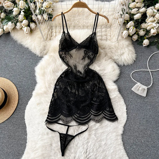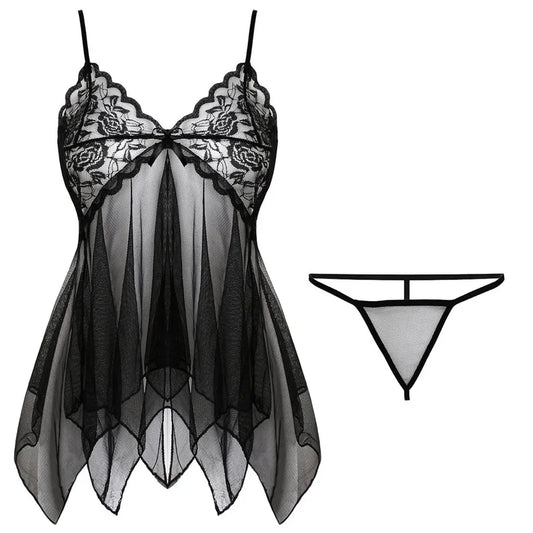 flower strap deep v sexy spandex lace sexy lingerie