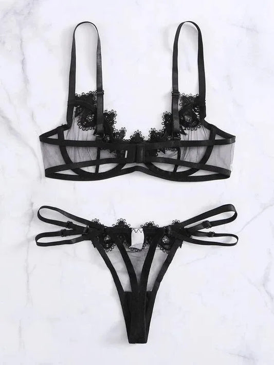 solid color underwire bra sexy hollow out mid waist sexy lingerie