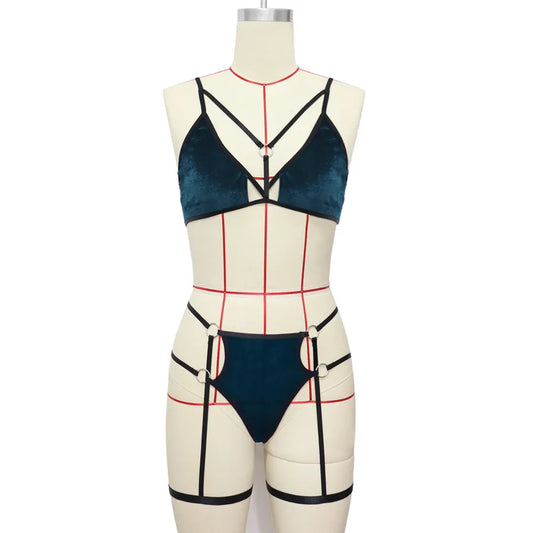 new product perspective golden velvet sexy lingerie set three-point garter seductive sexy lingerie wholesale nihaodropshipping
