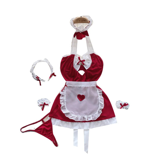 Women's Christmas Sexy Heart Shape Bow Knot Sexy Lingerie Sets Party Hanging Neck Type Low Waist Thong Sexy Lingerie