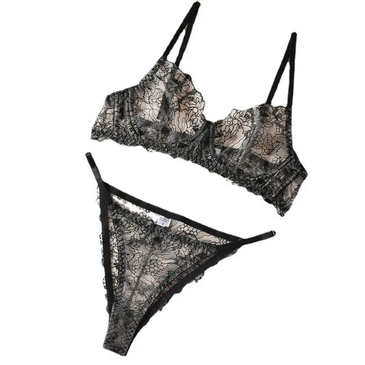 Women's Sexy Flower Sexy Lingerie Sets Home Honeymoon Sheer Bra Low Waist See-Through Sexy Lingerie