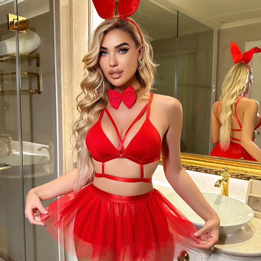 women's sexy solid color bow knot sexy lingerie sets nightclub home sleeping wireless bra sexy lingerie
