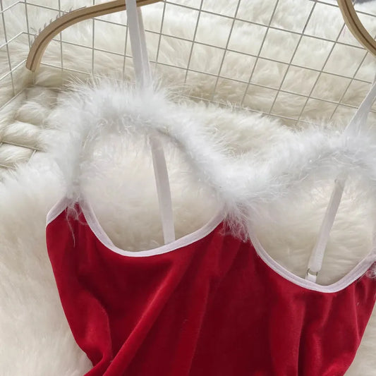 Women's Christmas Sexy Solid Color Sexy Lingerie Sets Party Jumpsuit Mid Waist Thong Sexy Lingerie