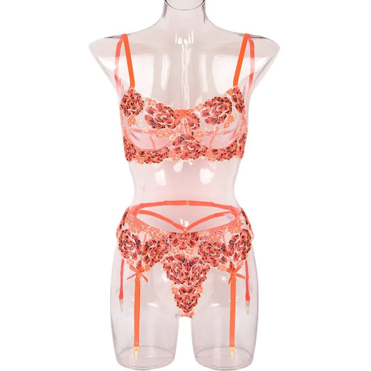 women's sexy cherry flower sexy lingerie sets party embroidery underwire bra mid waist thong sexy lingerie