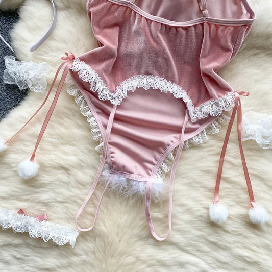 Women's Sexy Bow Knot Sexy Lingerie Sets Cosplay Wireless Bra Low Waist Briefs Sexy Lingerie