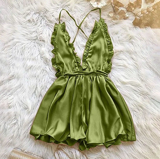 Foreign Trade Sexy Dress Deep V-Neck Hanging Neck Tether Backless Lingerie Fashion Dress Pants