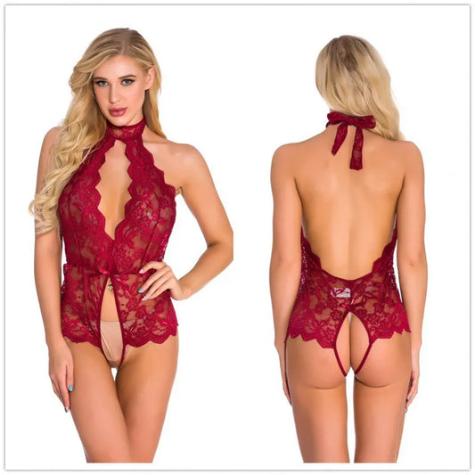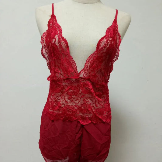 foreign trade new sexy lingerie sexy women's lace mesh split dress home wear sexy suit