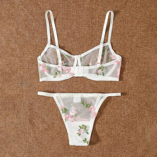 flower sheer bra sexy embroidery see-through low waist see-through sexy lingerie