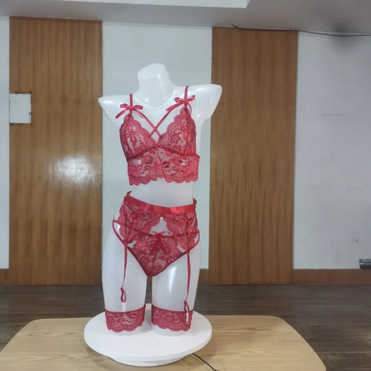 hairball bow knot lace bras sexy appliques low waist thong stockings sexy lingerie
