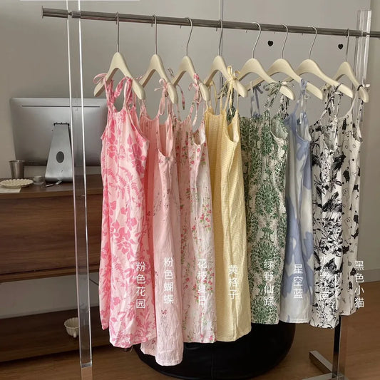 Summer Cloud Cotton Strap Dress With Chest Pad Loose Nightgown Home Clothes Floral Print Thin Home Printed Sweet Women's Pyjamas