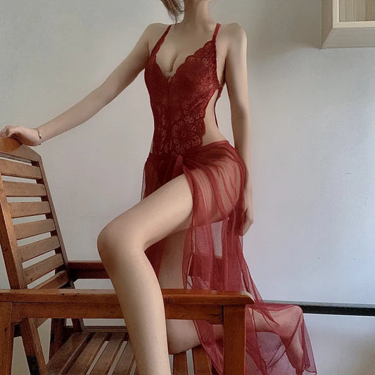 foreign trade new sexy lingerie sexy women's lace mesh suspender skirt nightdress pajamas sexy suit