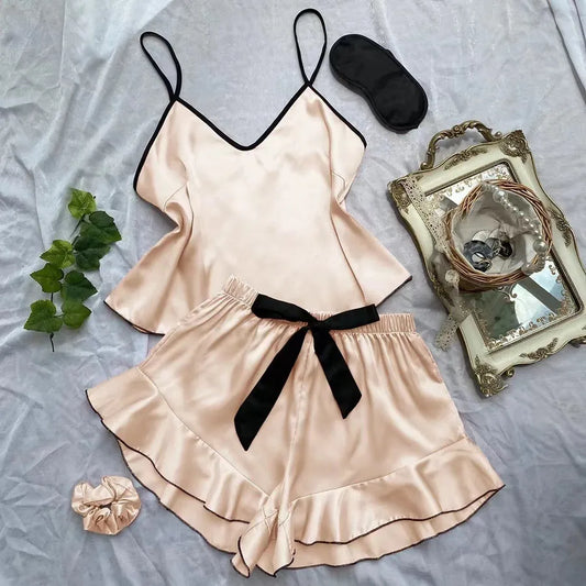 Sexy Ice Silk Lingerie Set Women's Style Sensual Plus Size Nightgown Sleepwear Comfortable Polyester Fabric