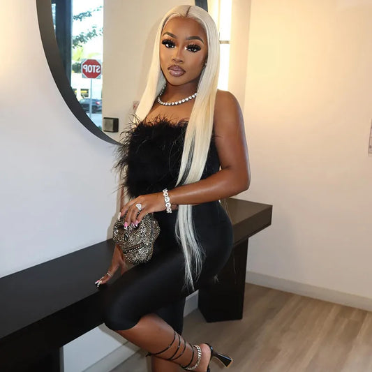 European Style Faux Fur Two-Piece Set With Belt Seven-Foot Pants Sleeveless Backless Fashion Casual Outfit For Women