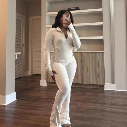 Women's Sporty Casual Slim Fit Long Sleeve Bell Bottom Two Piece Set Elegant Fashion Spring Summer New Arrival