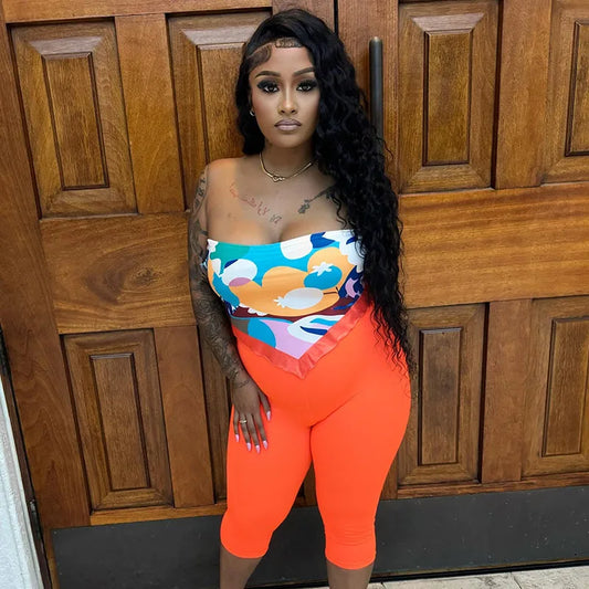 Sexy Backless Crop Top High Waist Seven-Five Pants Two-Piece Set Casual European Women's Fashion Silk Scarf Print Streetwear