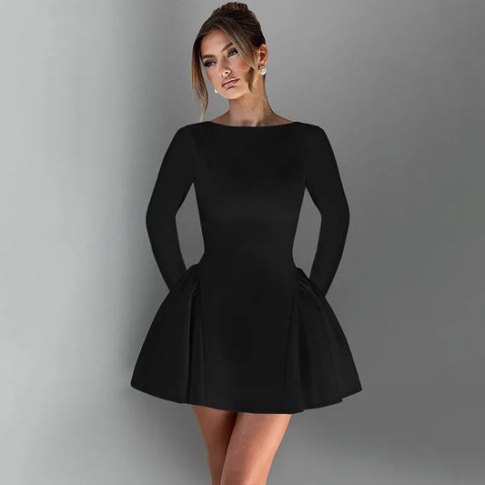 Women's Sheath Dress Sexy Round Neck Long Sleeve Solid Color Above Knee Holiday