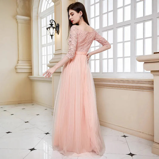 Wholesale Elegant Zipper Solid Color Adult Ceremony off-Shoulder Half Sleeve Formal Dress/Evening Dress
