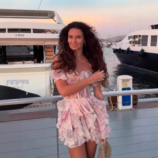Elegant Off-Shoulder Sleeveless Gown European Fashion Trend Women's Dress V-Neck Polyester Organza Skirt Style Commute
