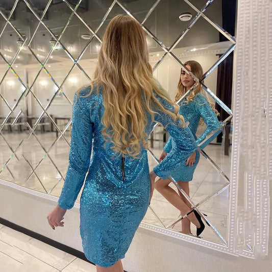 Sexy Fashion Multi-Color Sequin Bodycon Mini Dress Club Night Outfit Short Skirt European American Style High Waist Long Sleeve