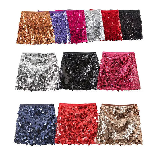 Spring Fashion Mini Skirt Glittering Sequin New Arrival Elegant Intellectual Style Commute Friendly Polyester Fabric