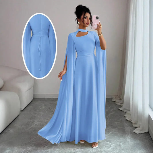 Elegant Long Sleeve Deep V Neck Evening Dress Women's Gown Split Style Party Dress Fashionable Commute Style Pure Color Pattern