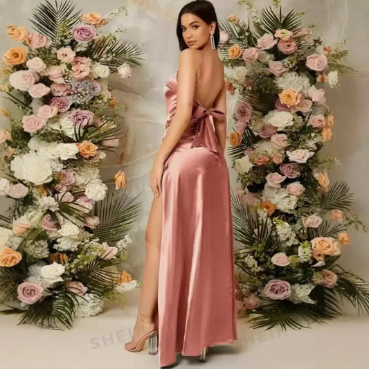 New Dress Festival Ball Gown Spaghetti Strap Sequin Patchwork Split Bridesmaid Dress