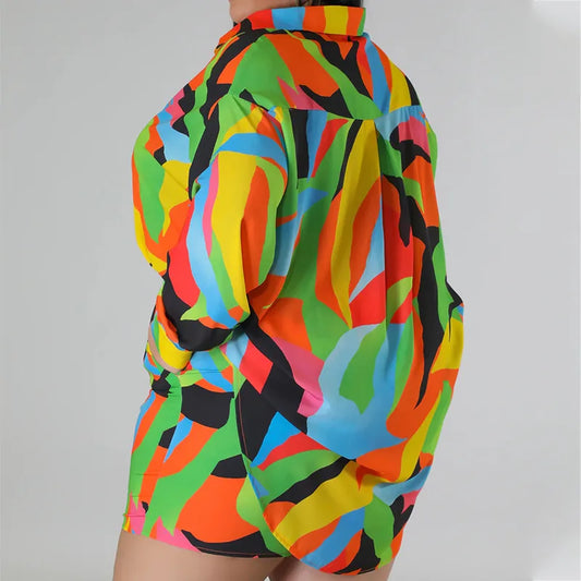 Shacket Long Sleeve Plus Size Tops Printing Streetwear Plaid