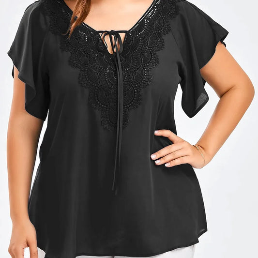 Blouse Short Sleeve Plus Size Tops Straps Casual Elegant Geometric