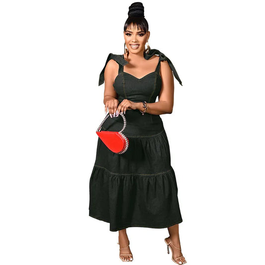 Wholesale Streetwear Solid Color Holiday Street Strap Sleeveless Denim Dress