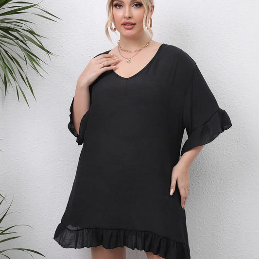 Loose skirt Casual Elegant Commute Round Neck Ruffles Half Sleeve Solid Color Above Knee Banquet Selfie