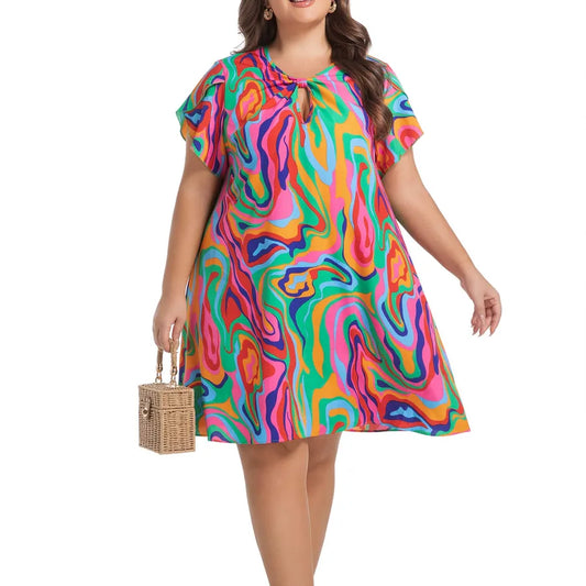 Wholesale Romantic Multicolor Outdoor Beach V Neck Short Sleeve Straight Skirt
