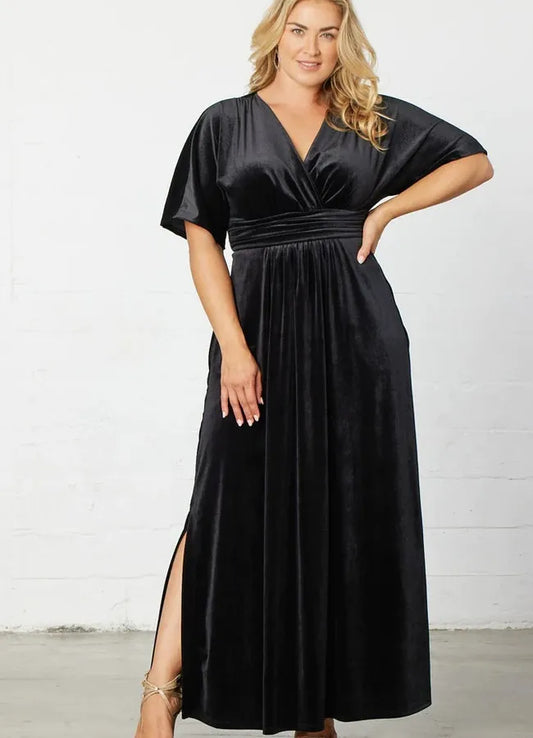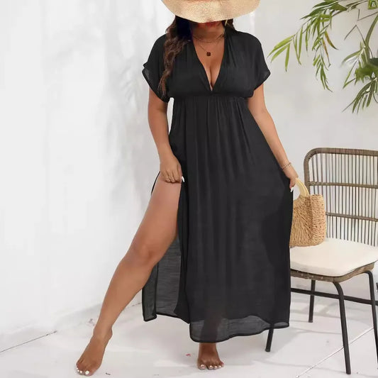 Irregular Skirt Elegant Lady Streetwear V Neck Slit Dress Short Sleeve Solid Color Maxi Long Dress Holiday Banquet