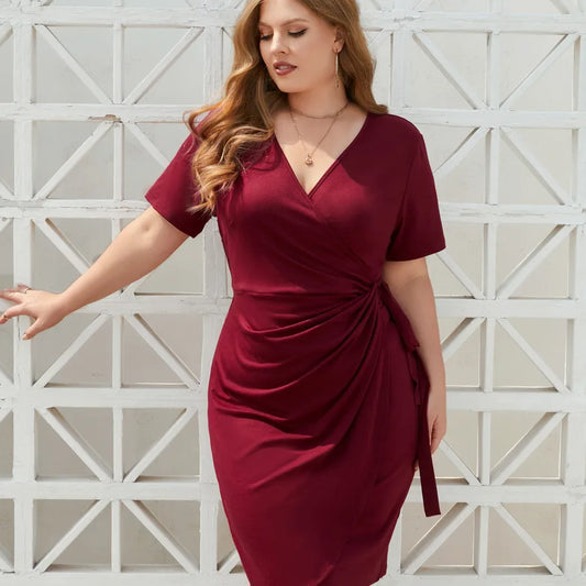Sheath Dress Elegant V Neck Pleated Half Sleeve Solid Color Maxi Long Dress Holiday Cocktail Party