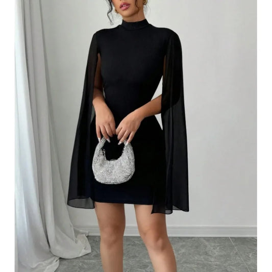 Spring Sexy Slim Fit Fashionable Long Sleeve Mesh Dress Elegant Mini Dress Pure Color Polyester V Neck Princess Dress