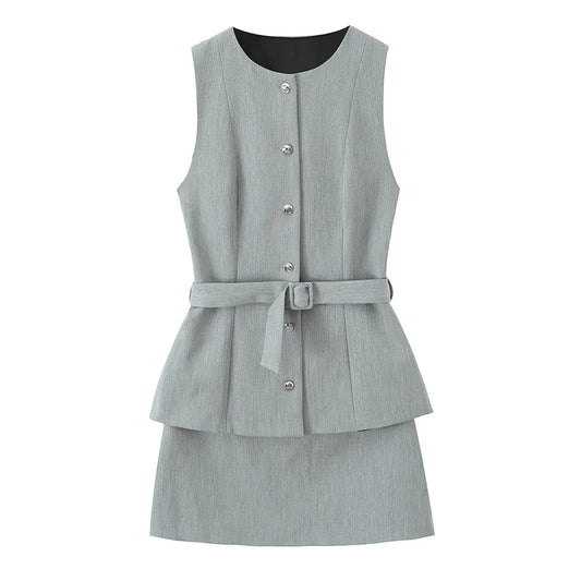 Fashionable Two-Piece Short Dress Style Elegant Polyester Fabric Sleeveless Pure Color Printed Dress