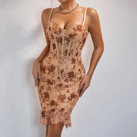 Women's Strap Dress Elegant Strap Sleeveless Leaves Above Knee Holiday