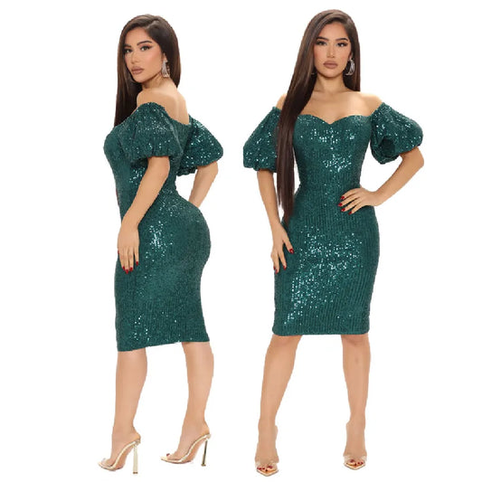women's a-line skirt elegant off shoulder sequins 3/4 length sleeve solid color above knee daily