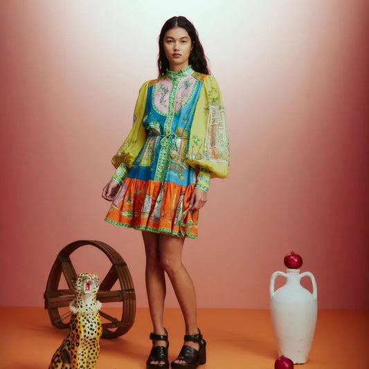 Women's Boho Dress Casual Standing Collar Long Sleeve Plant Above Knee Holiday Daily