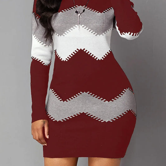 Women's Sweater Dress Elegant Turtleneck Long Sleeve Stripe Above Knee Daily