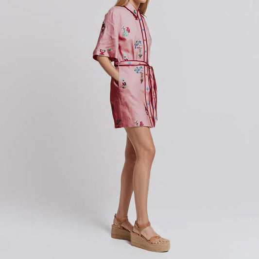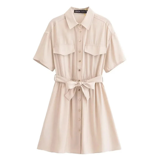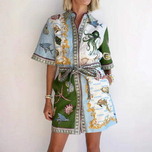 Wholesale Women's Elegant Style Temperament Commuter Pastoral Pocket Printing Office Indoor Daily Shirt Collar Half Sleeve Shirt Dress